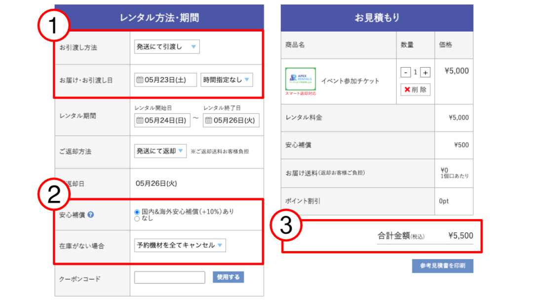 弊社のレンタルシステムをそのまま活用しているため、少し手順が多いのですが以下をご確認のうえお進みください。