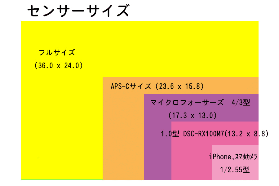 iPhoneとDSC-RX100M7のセンサーサイズをだいたいで図にすると、こうなります!!