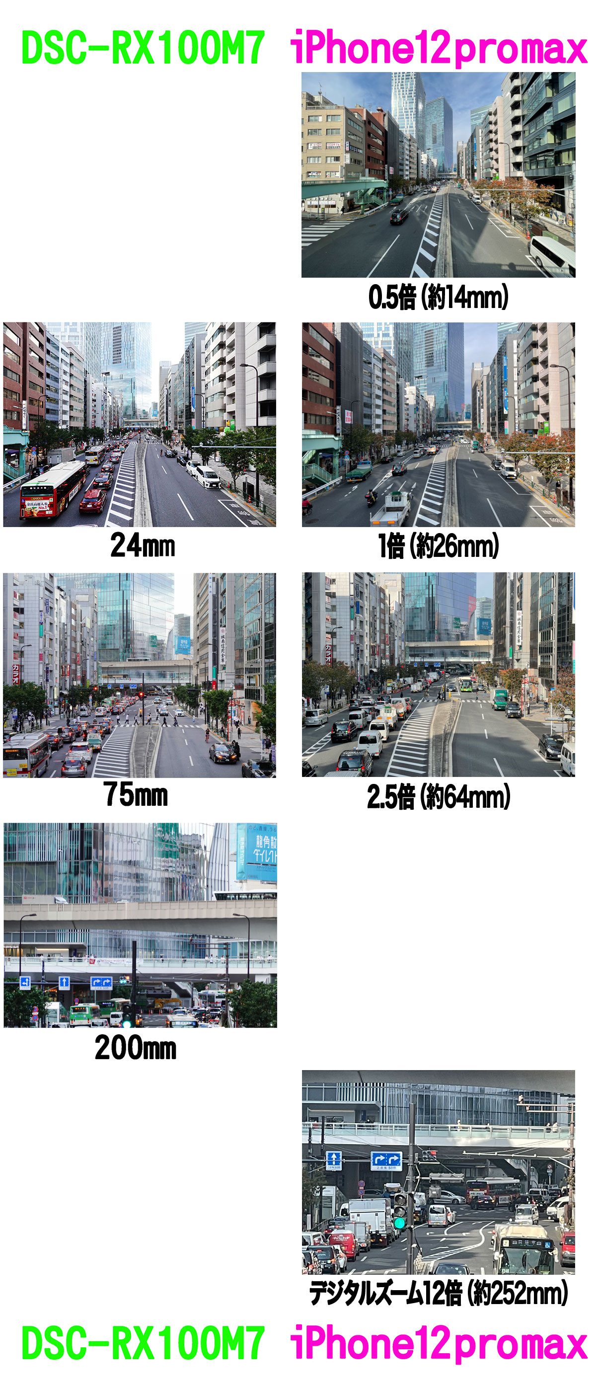 iPhoneが広角側に、DSC-RX100M7が望遠側に強いことが画角から分かります。