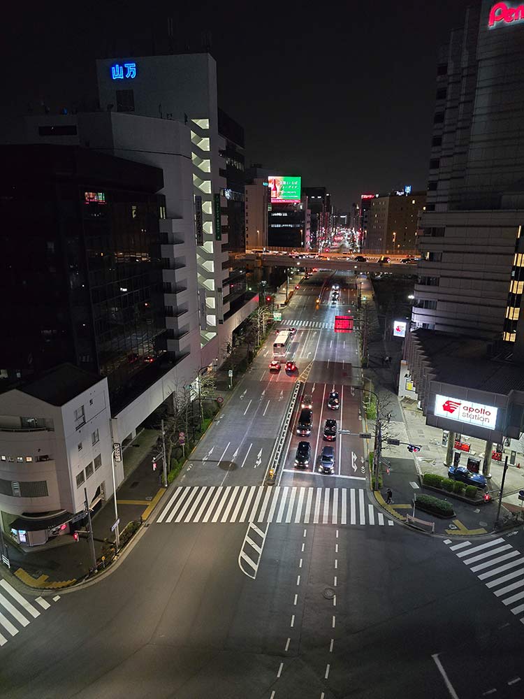 S23 Ultraはオート撮影だとコントラスト強めに処理する傾向があるため、光源の白飛びが避けられません。